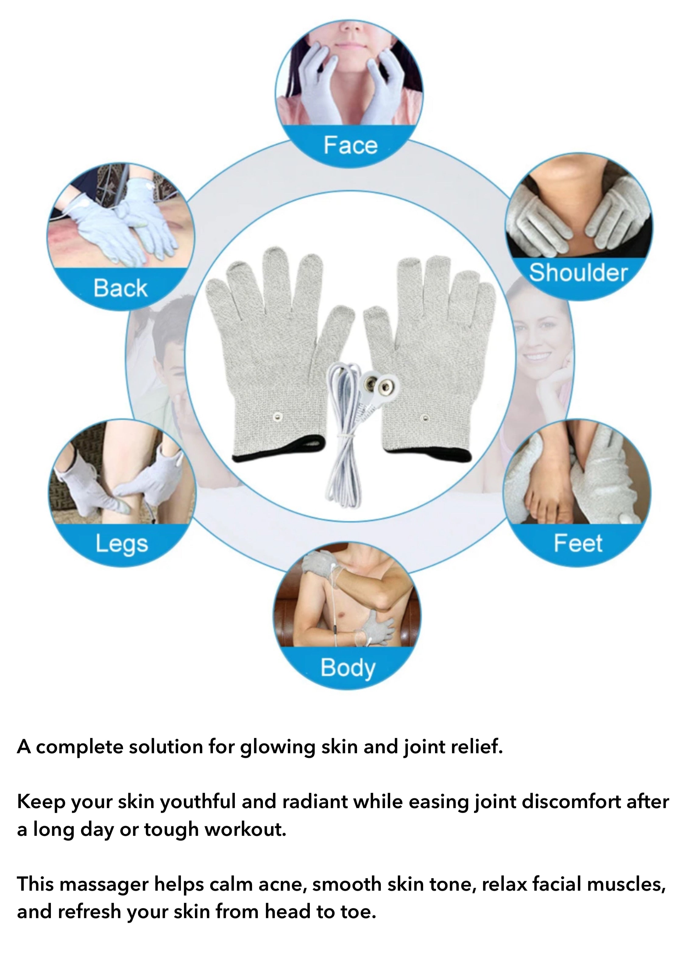 The microcurrent glove massage stimulates intracellular energy, helping muscles and skin cells function at their best for a healthier, more youthful appearance.