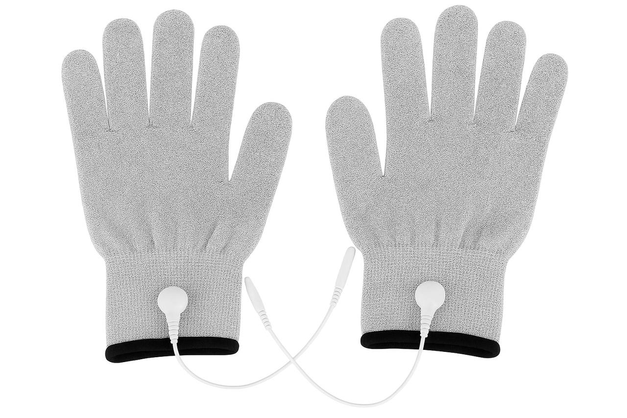 These advanced microcurrent massage gloves deliver gentle electrical stimulation that: