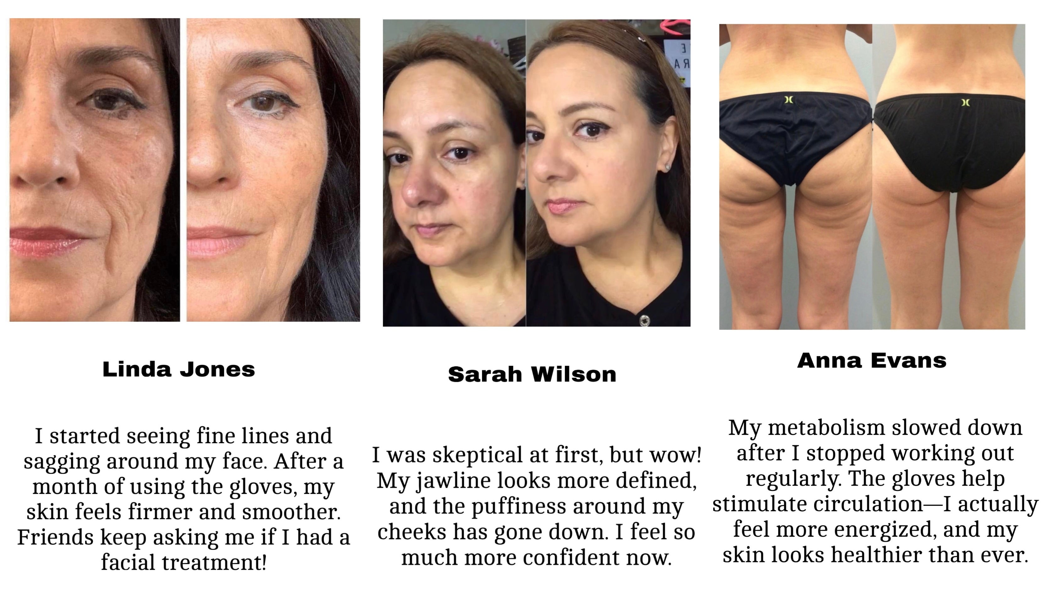 Our electro-stimulating gloves are you at-home solution. Safe, effective, and easy to use - feel the difference in minutes and let your confidence shine.